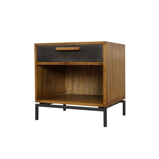 Bellevue End Table 1 Drawer Graphite Metal Legs, Graphite/Natural Mango
