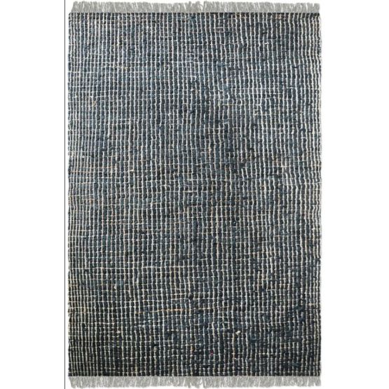 Hand woven recycled charcoal leather and natural hemp. This rug is not recommended for high traffic areas. 8'x10'