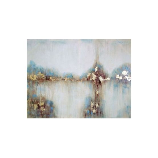 Medium Hand Embellished Canvas Wrapped Art. Frame is in a warm nickel finish. Does not come standard with a hanging wire. Orientations are for existing hangers, but can be hung either direction.