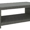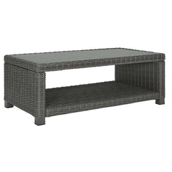Add a distinguished touch of gray to your outdoor living space with this coffee table. This head-turning table is made with resin wicker over an aluminum frame for a relaxed look that provides seasons of enjoyment. Its aluminum top combines the exceptional durability and weather resistance you need with the "wood look" finish you love.