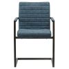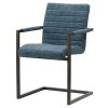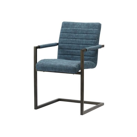 Sometimes less really is more. Case in point: the minimalist Modern Industrial-style dining chair with its simple L-shaped body and Brushed Brass steel frame. The back, gently curved seat and arms are upholstered in a faux suede called Kalahari Blue