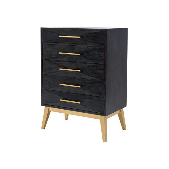 Leonardo KD Cabinet 5 Drawers Gold Legs, Black Wash **