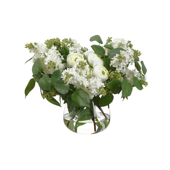 15.25"Hx20"Wx22"L Lilac-Ranunculus in Glass Vase Cream