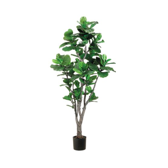 6' Fiddle Leaf Tree with 144 Leaves and PU Trunk in Plastic Pot Green: Trees come in generic pot that can easily fit inside of a decorative pot - decorative pot not included. Leaf count is a description and not a precise count of leaves.