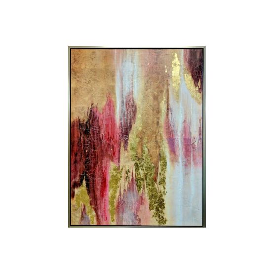 Medium Hand Embellished Canvas Wrapped Art. Frame is in a warm nickel finish. Does not come standard with a hanging wire. Orientations are for existing hangers, but can be hung either direction.