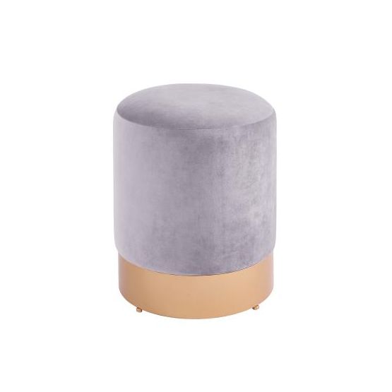 Coco Velvet Fabric Round Ottoman, Serene Gray/Gold