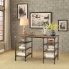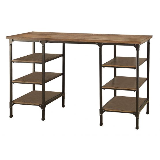 With a look that blends the transitional design element of wood and accenting that lends to a modern traditional aesthetic, the Fields Desk will help to create the ambiance that you are looking to achieve in your home or office. The decorative metal base and framing of the collection provides an industrial feel, lending to the casual contrast of the Distressed Wash Veneer of the shelving and handscraped weathered tops.
