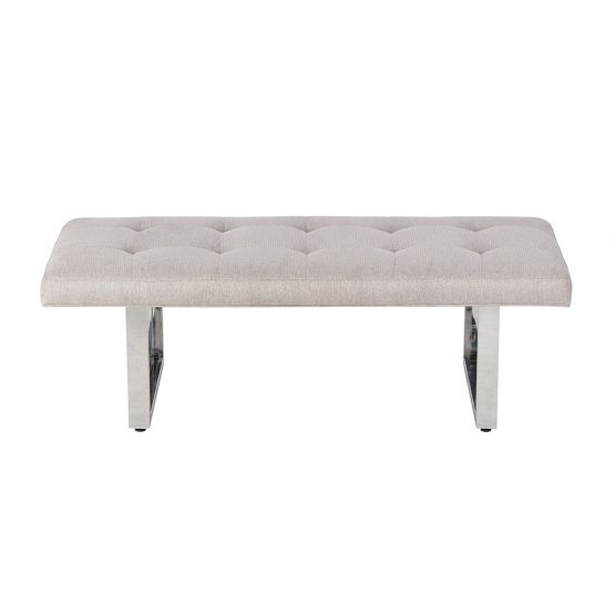 This contemporary bench features a square tufted cushion with a beautiful chrome finish on the legs. The high-density foam filling provides exceptional comfort, while the steel legs ensure incredible support and stability. Place this modern bench in an entryway or bedroom to give your décor a truly modern look. Leg assembly is required