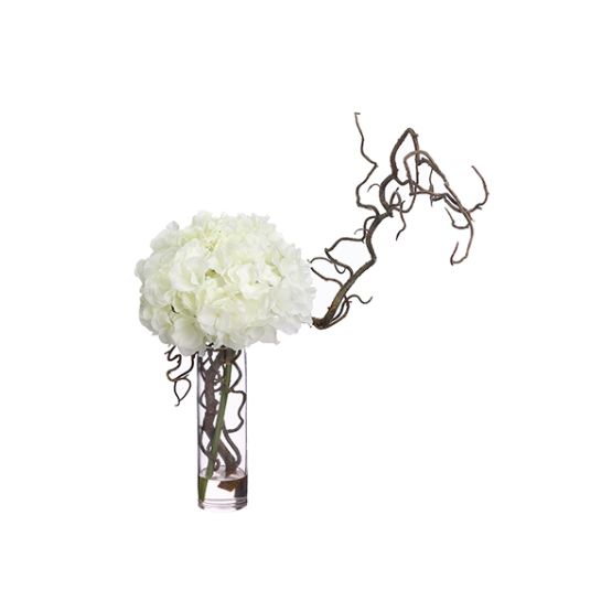 18"Hx11"Wx16"L Hydrangea- Curly Willow in Glass Vase White