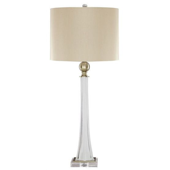 White Finished Glass and Brass Finished Metal Laurel Glass and Brass Table Lamp. Drum Shade. 3-Way Switch. Type A Bulb – 150 Watts Max or 25 Watts Max CFL.