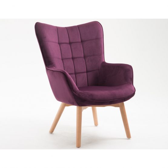 ACCENT CHAIR-PURPLE: Piped edging, wood trim legs, and quilting tuft give the chair its unique and sophisticated design. Margo is so soft and comfortable, it will quickly become the best seat in the house.