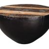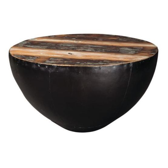 Black iron tapered drum/base contrasts nicely against the natural reclaimed wood top