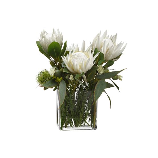 21"Hx19"Wx21"L Protea-Rosemary-Wolly in Glass Vase Cream